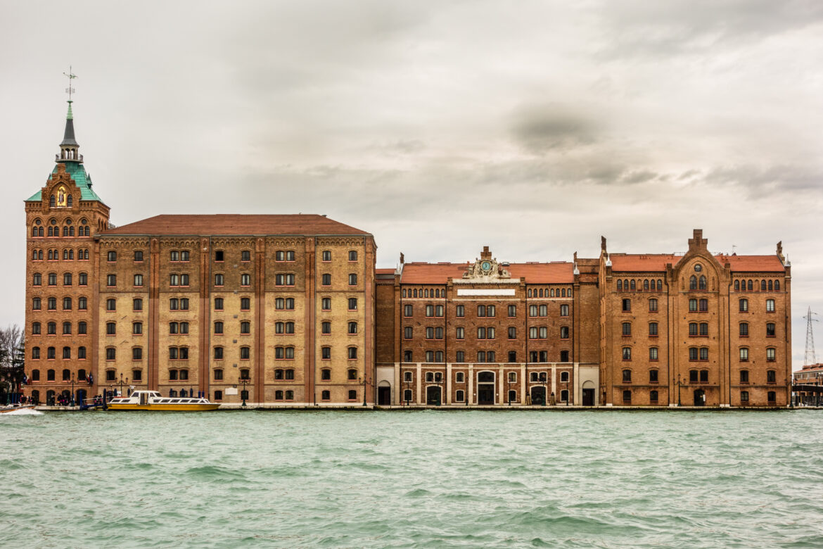 The Venice Heritage Tower affords a vantage point of Italy's first industrial port, built on the shores of the lagoon in 1917. The decision to